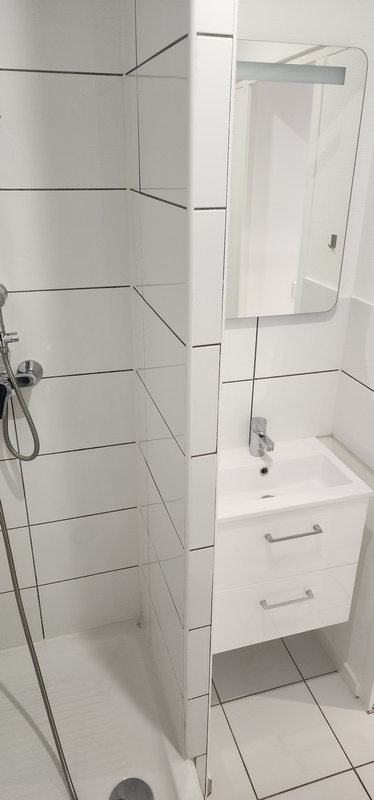 Studio comprenant une entrée, un séjour avec coin cuisine équipée kitchenette et rangements, placards, une salle de douche avec wc.